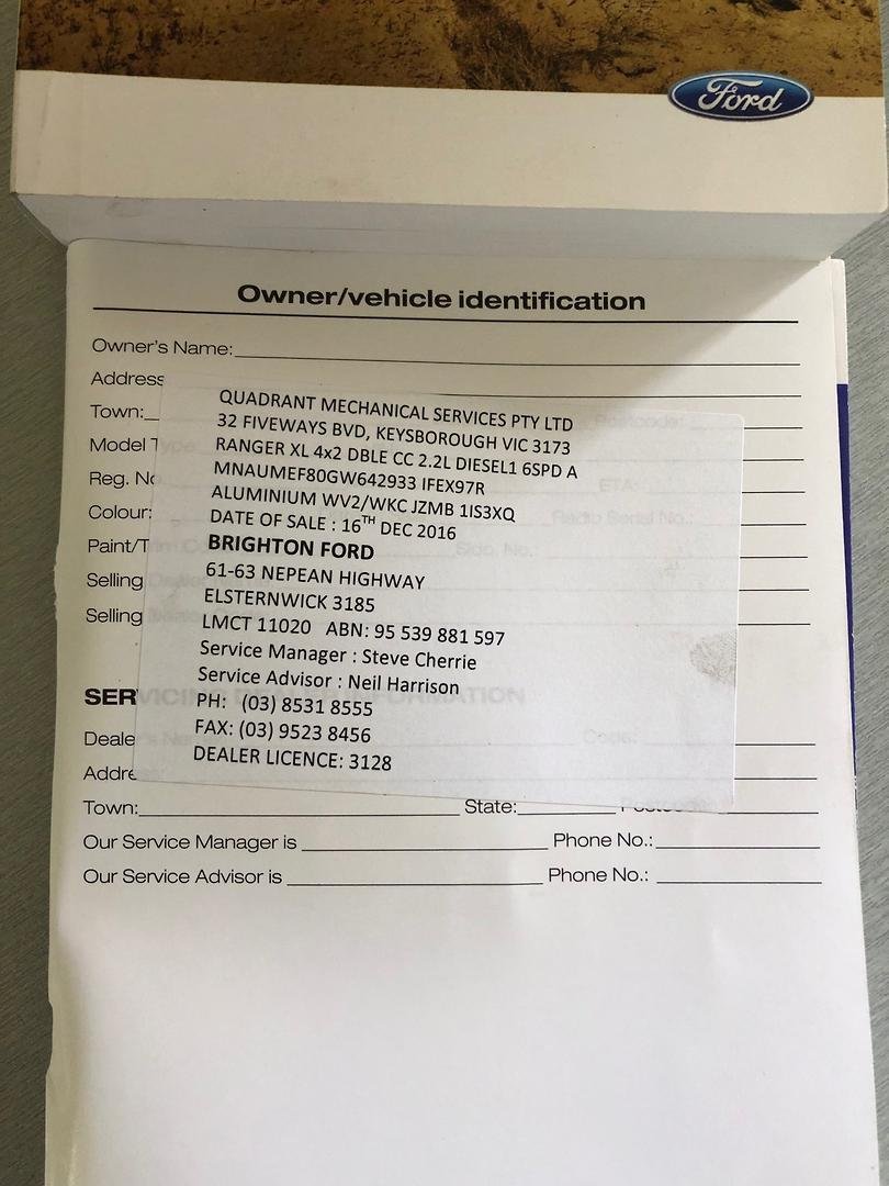 2016 Ford Ranger XL HI-Rider PX Mkii 4X2