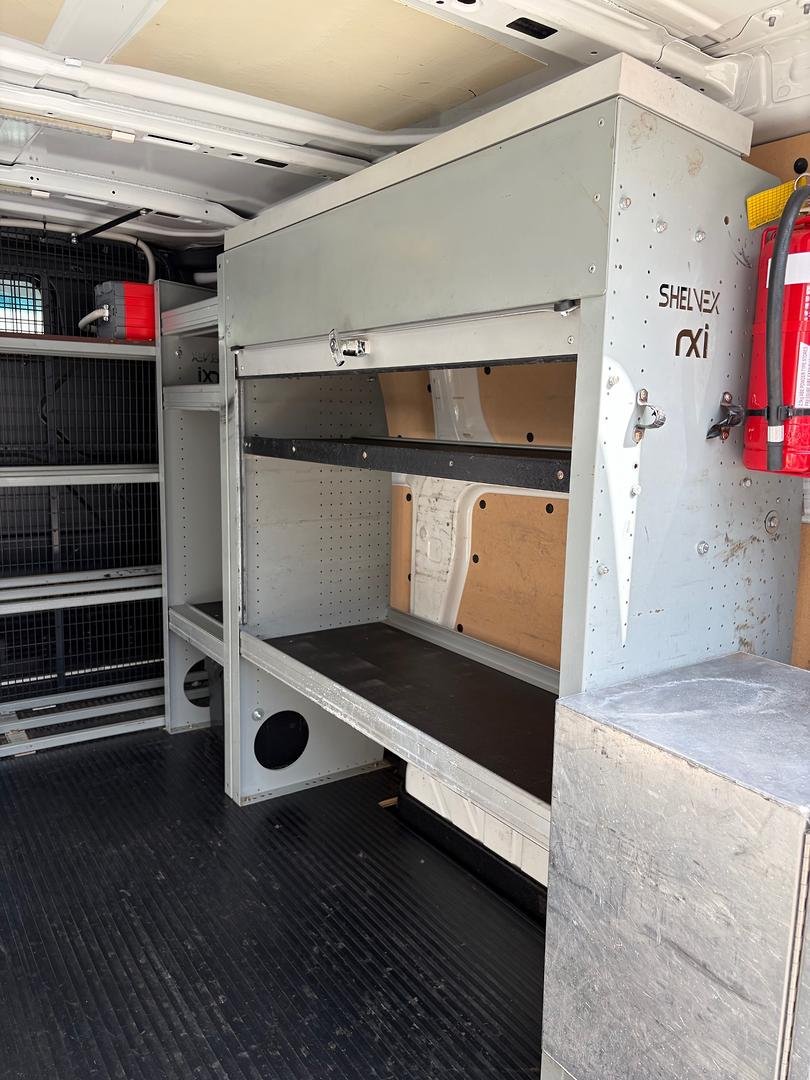 # FITTED OUT WITH SHELVING, STORGAE COMPARTMENTS, WORK BENCH, CARGO BARRIER AND ROOF RACKS