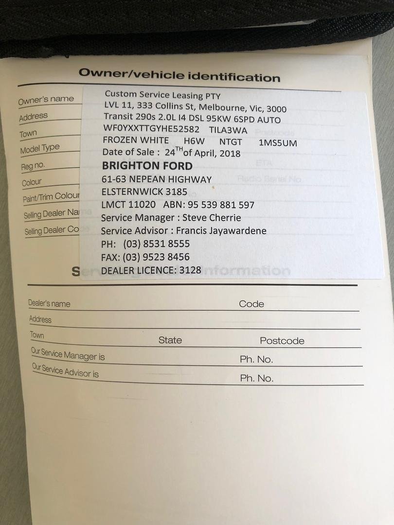 2018 Ford Transit Custom 290S VN 2017.75MY
