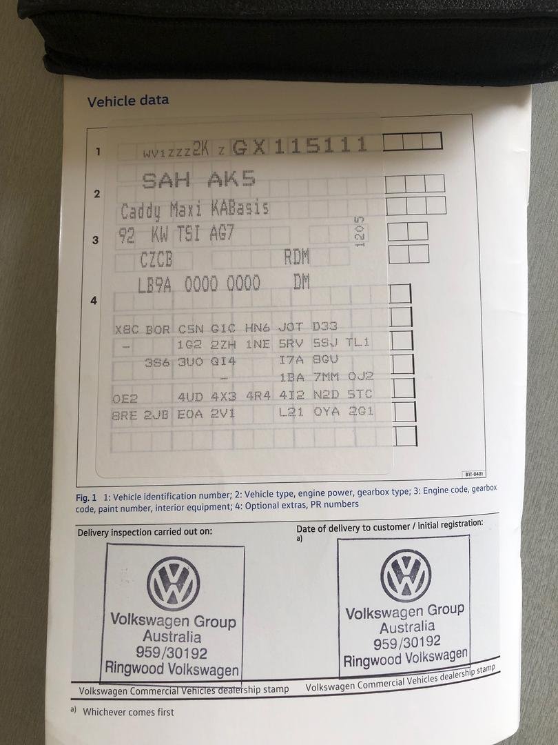 # 2016 VW CADDY MAXI TSI220 VAN